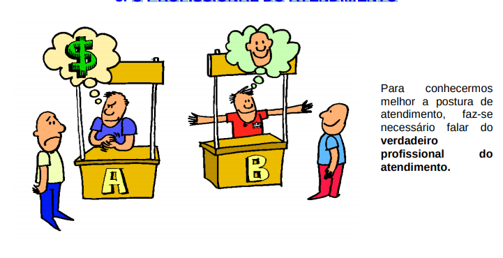 Já a POSTURA DE ATENDIMENTO, que é o tratamento dispensado às pessoas, está mais relacionado com o funcionário em si, com as suas atitudes e o seu modo de agir com os clientes. Portanto, está ligado às condições individuais.
