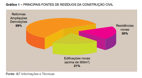 Nos últimos anos, a construção civil tem incrementado significativa-mente a quantidade de resíduos sólidos gerada principalmente em grandes municípios, contribuindo para o agravamento de problemas ambientais e sociais. Essa grande quantidade de resíduos provém de diversas fontes, principalmente das obras de intervenção como reformas, ampliações e de-molições.