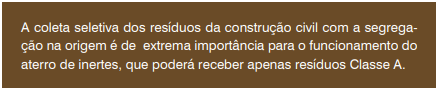 Segregação: consiste na triagem dos resíduos da construção civil no local de origem ou em locais licenciados para essa atividade.