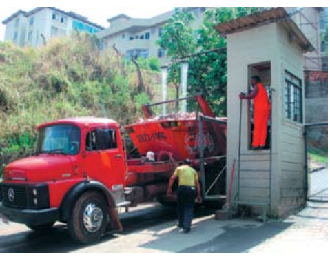 - Guarita/Portaria: local onde são realizados os trabalhos de verificação dos veículos, inspeção inicial dos resíduos recebidos e umidificação do entulho – ducha, possibilitando a minimização dos particulados.