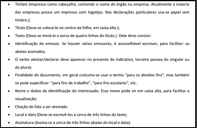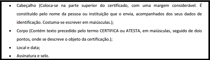 É um documento em que se faz fé de algo e que tem valor legal. Pode haver atestados ou certificados de serviços prestados, de estudos realizados, de pagamentos, etc. Para a sua elaboração, utiliza-se geralmente papel de tamanho A4, escrito em sentido vertical, como se mostra em seguida: