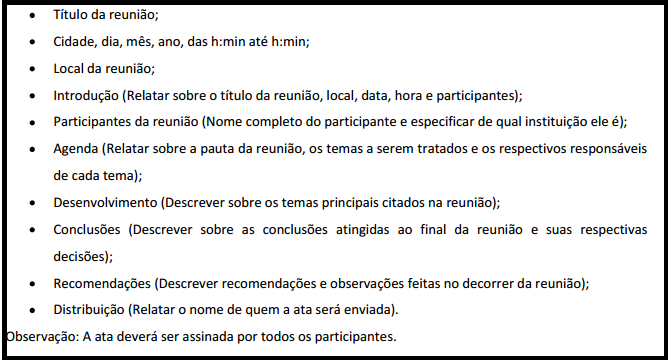 A estrutura básica para uma ata pode ser esta: