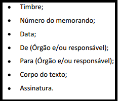 O memorando, estabelecendo uma comparação, é uma espécie de bilhete comercial de que as empresas ou órgãos oficiais se utilizam para estabelecer a correspondência interna entre seus setores e departamentos. Por ser um tipo de correspondência cotidiana, rápida e objetiva, o memorando segue uma forma fixa, sendo para isso utilizado um papel impresso. Observe a estrutura de um memorando, atentando para a ausência de saudações e finalizações: