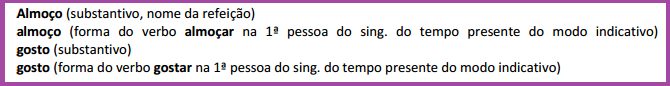 Existem algumas palavras que possuem a mesma escrita (grafia), mas a pronúncia e o significado são sempre diferentes. Essas palavras são chamadas de homógrafas e são uma subclasse dos homônimos.