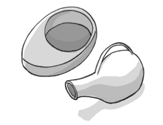 8. Deite novamente a pessoa com a barriga para cima,colocar a comadre e fazer a higiene das partes íntimas. Na mulher é importante lavar a vagina da frente para trás, assim se evita que a água escorra do ânus para a vulva. No homem é importante descobrir a cabeça do pênis para que possa lavar e secar bem.