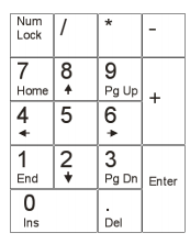 Ao contrário das máquinas de escrever, o teclado do micro tem um teclado numérico separado. Permanecem os números da quarta fileira de teclas, mas o teclado numérico em bloco, que fica à direita do teclado, permite digitação de números com grande rapidez, incorporando também teclas que permitem operações matemáticas básicas. Para utilizá-lo, é preciso acionar a tecla Num Lock. Se ela não estiver acionada, o teclado irá assumir o segundo símbolo indicado em cada tecla. Para se tornar um digitador de números eficiente, você precisará usar o teclado numérico, exclusivamente com a mão direita.