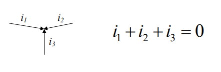 Soma de correntes que saem dos nós é igual a zero.