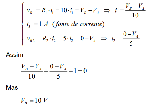 Mas, pelas relações v x i no resistor e pela propriedade das fontes de corrente, tem-se que: