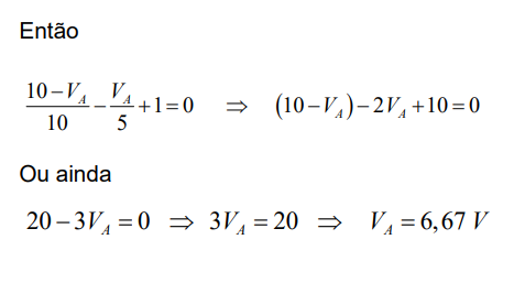 Sabe-se pela LKC que, no nó A, tem-se: