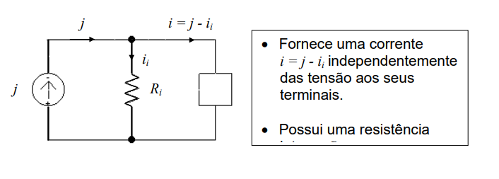 Fornece uma corrente i = j independentemente das tensão aos seus terminais.