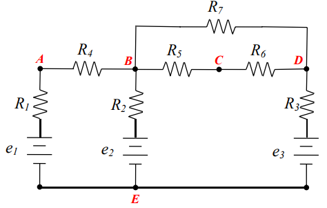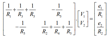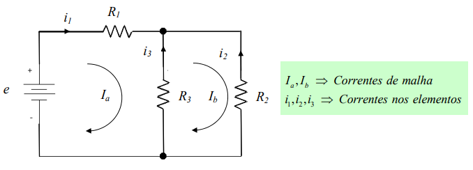 - Rij é o valor da soma das resistências presentes nas malhas i e j tomada com sinal negativo;