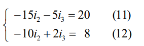 Pela equação (9) vê-se que a corrente i1 é função das correntes i2 e i3. Assim: