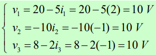 Substituindo os valores encontrados para as correntes nas equações (1) a (3) vem que