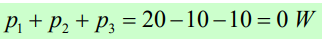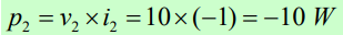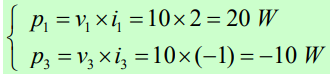O leitor pode perceber que a fonte presente no elemento 1 fornece potência (ela é positiva, de valor 20 W), enquanto a fonte presente no elemento 3 consome potência (a potência fornecida é negativa, de valor -10 W). O elemento 2, resistor puro, obviamente consome potência, ou seja, fornece potência negativa. Esta afirmativa pode ser comprovada calculando a sua potência fornecida, ou seja: