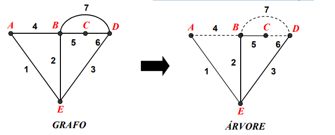 Teorema: Para uma dada árvore “T” de um grafo “G” com “n” nós e “e” elementos, existem exatamente “r = n - 1” ramos e “c = e – n + 1” cordas.