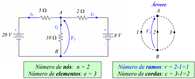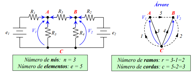 Corolário: Num circuito elétrico existem “r” equações linearmente independentes relativas à LKC e “c” equações linearmente independentes relativas à LKT.