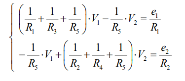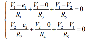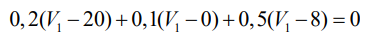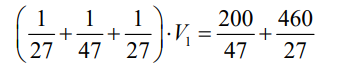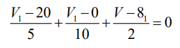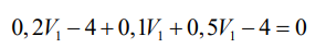 Expressando as correntes dos elementos em função da tensão do nó A em relação à tensão do nó B, denominada V1, vem que: