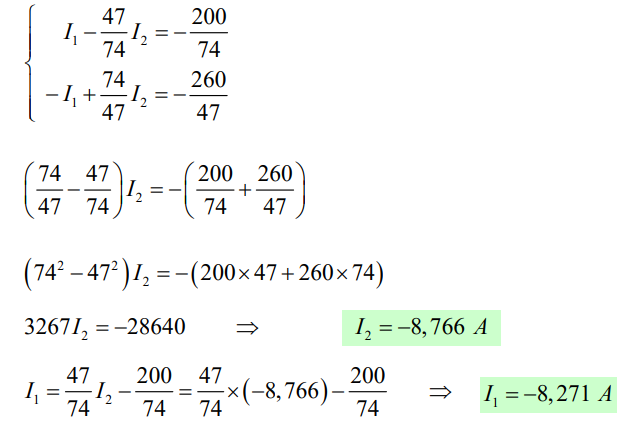 Os valores das correntes nos elementos pode ser calculado simplesmente verificando que: