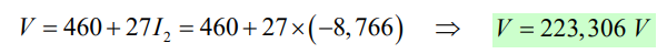 Fazendo (1) – (2) e (2) – (3) e substituindo respectivamente em (5) e (6), consegue-se eliminar as variáveis relativas às tensões. Assim procedendo: