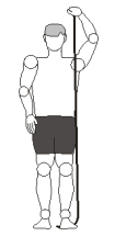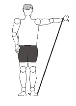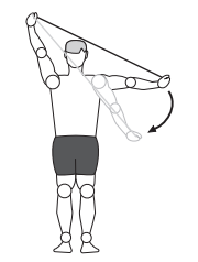 3. Agora, elevar a mão à altura ligeiramente acima da cabeça, mantendo o elástico rente ao corpo e manter por 10 segundos.