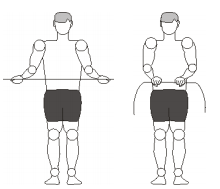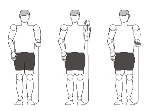 1. Da postura anterior, levantar os braços de tal forma que os cotovelos ficam á altura dos ombros e os antebraços fiquem a 90º dos braços, esta é a postura 1.