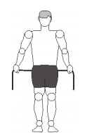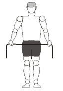 1. A partir da postura 2, esticar os braços para trás e depois para baixo até o elástico encostar no traseiro, sempre mantendo a tensão no elástico.