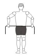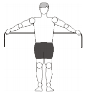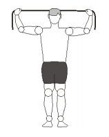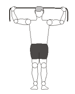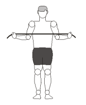 - 2ª Série: Postura inicial: O elástico deverá ser enrolado na mão de tal forma que fique somente um palmo de distância entre os punhos. Se for muito difícil, ou se o elástico não tiver sufeciente elasticidade pode-se aumentar a distância entre os punhos até no máximo a largura dos ombros.