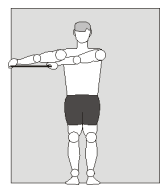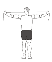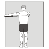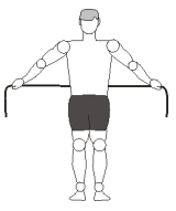 4. Esticar os braços para o lado, mantendo o elástico encostado no corpo.
