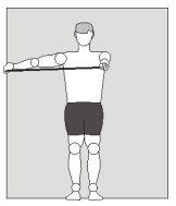 2. Levantar a mão até chegar à altura do ombro e segurar o elástico por 10 segundos, sem encostar no corpo.