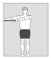 4. Abaixar a mão até que o cotovelo e a mão fiquem à altura do ombro e o antebraço forme um ângulo de 90º com o braço (se esse ângulo for menor que 90º o exercício não terá nenhum efeito, o mesmo acontece se o cotovelo e a mão não estiverem à altura do ombro). Manter por 10 segundos.