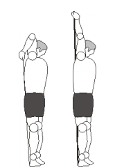 5. Esticar o braço completamente e levantar a mão até o ombro, em seguida abaixar a mão esticando novamente o braço por completo.