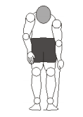 - Relaxar e alongar o peito e a musculatura superior dos ombros: Dê as mãos atrás das costas, caso seja difícil dar as mãos, você pode usar a ajuda de uma toalha. Segure por 10 segundos e depois se curve para a frente e tente olhar por entre as pernas. Fazer com os dois lados.