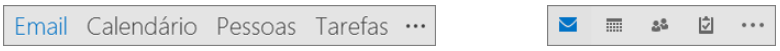 Geralmente localizada na parte inferior da janela Outlook, a barra de acesso rápido mostra, dependendo das configurações selecionadas, nomes de botões (imagem esquerda) ou ícones (imagem direita) associados a nomes de recursos.