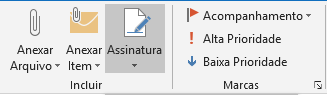 1.Em uma nova mensagem, escolha Assinatura >Assinaturas.