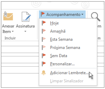 Lembretes são exibidos em uma janela de alerta, para que você não perca uma data limite importante. Você pode adicionar ou remover lembretes para quase qualquer coisa no Outlook.