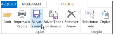 Na guia Anexos, no grupo Ações, escolha Salvar como. Você também pode clicar com o botão direito do mouse no anexo e escolher Salvar como.