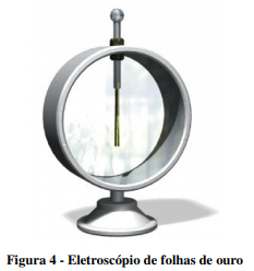 O eletroscópio é um instrumento usado para detectar carga elétrica. É composto por duas folhas metálicas muito finas posicionadas dentro de uma caixa e ligadas eletricamente a uma esfera metálica fora da caixa, figura 4.