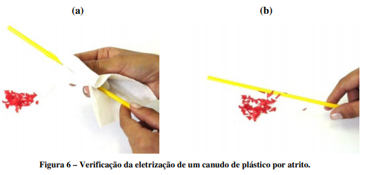 b) Aproxime um canudo de pequenos pedaços de papel picado. Observe e explique o que acontece.