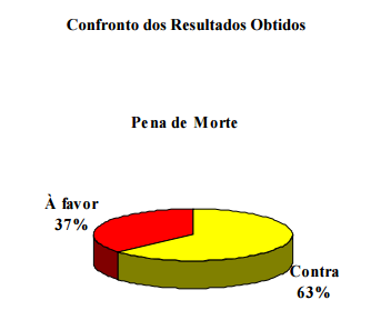 Passando a pesquisa para os acadêmicos do curso de direito, os quais já apresentam conhecimentos jurídicos, o resultado inverteu-se para 72% (setenta e dois por cento) desfavoráveis a aplicação da penalidade máxima. Observa-se ainda, que direcionando a indagação para outra área acadêmica, que não a jurídica, sobe novamente o índice de favoráveis a pena capital, pois entre os acadêmicos de psicologia ficou em 38% (trinta e oito por cento) a porcentagem de favoráveis.
