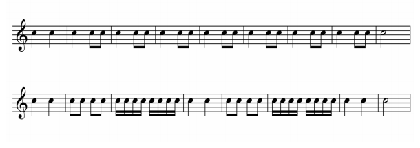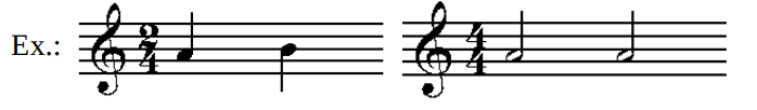 Vejamos, por exemplo, um compasso simples Binário,Ternário ou Quaternário no qual a unidade de tempo seja a semínima ou a colcheia. A semínima vale duas colcheias e a colcheia vale duas semicolcheias. Logo, ambas são divisíveis por dois. Por conseguinte, os compassos que tiverem sua unidade de tempo divisível por 2(dois) serão chamados de compassos simples.