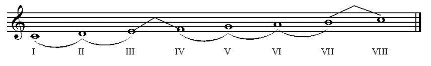 A escala diatônica possui 8 graus, sendo o VIII a repetição do primeiro.