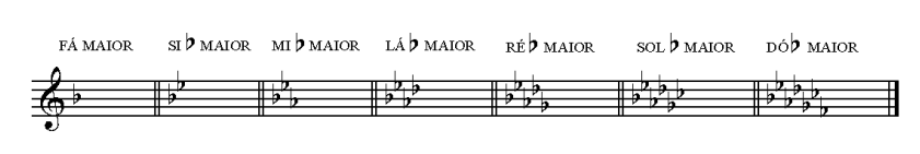 Eis as armaduras de Clave das escalas Maiores com Bemol:
