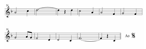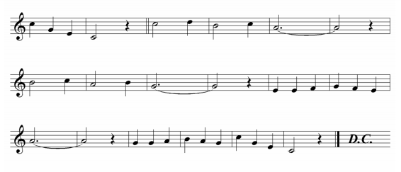 O “Da Capo” só é usado para repetir um trecho mais ou menos longo.É expressado por esse símbolo:
