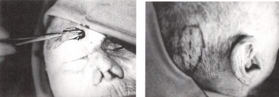 O procedimento mais utilizado é o enxerto de duas porções de pele total do couro cabeludona região supraciliar (SILVEIRA,1939. ARAÚJO,1940) (Fig. 15.1).