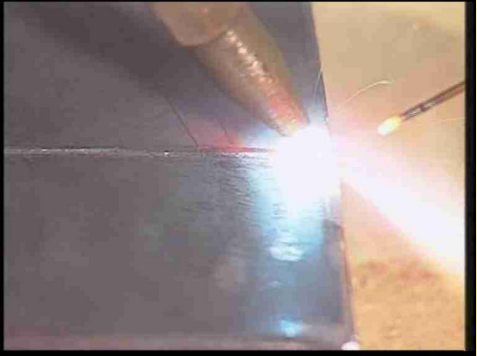 O fluxo normalmente levado até a região da soldagem com auxilio do arame do material de adição.