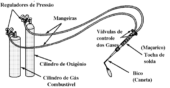 O equipamento básico além de ser utilizado com acetileno também pode ser utilizado com outros gazes.