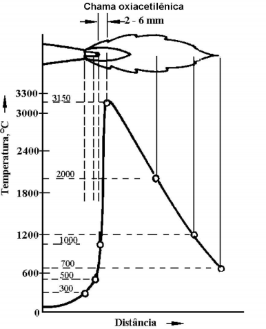 No corte, é feito um aquecimento do material a ser cortado até a temperatura de reação do metal com oxigênio (ignição), no caso de aço, entre 700ºC e 900ºC, quando toma a coloração vermelho cereja, mas ainda não atingiu a temperatura de fusão.