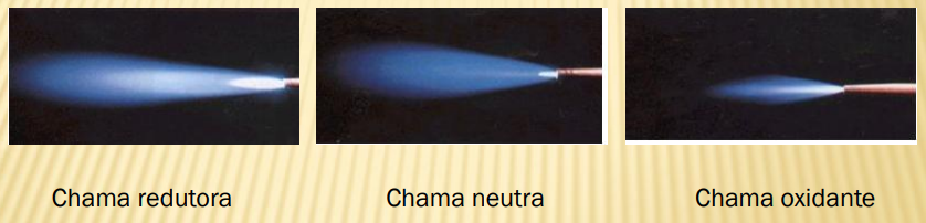 A reação química da chama oxiacetilênica pode ser ajustada pela variação da relação da mistura do oxigênio / gás combustível, modificando assim as características da chama:
