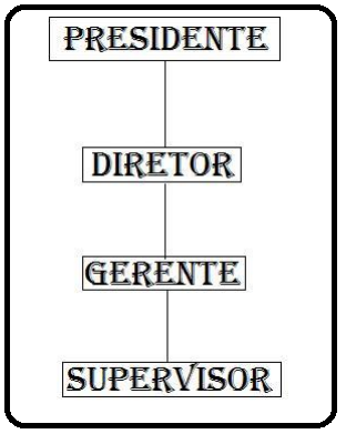 Na figura abaixo está representada uma cadeia de comando simplificado, onde o supervisor é subordinado ao gerente que por sua fez é subordinado ao diretor que é subordinado ao presidente.