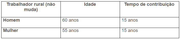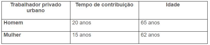 - Período mínimo de contribuição: 15 anos para mulheres e 20 para homens no setor privado; e 20 para homens e mulheres no caso de funcionários públicos;
